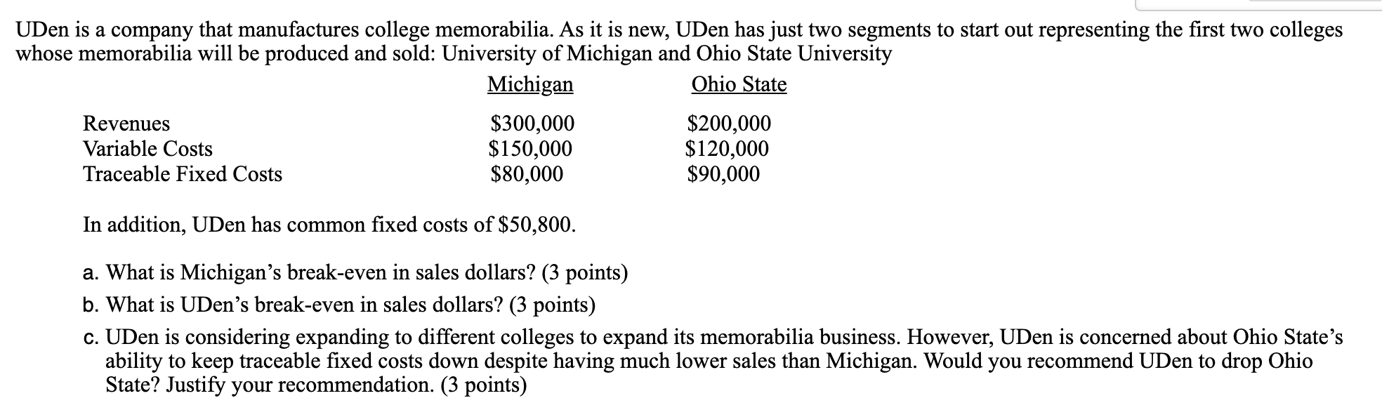 Solved Uden Is A Company That Manufactures College Chegg Com