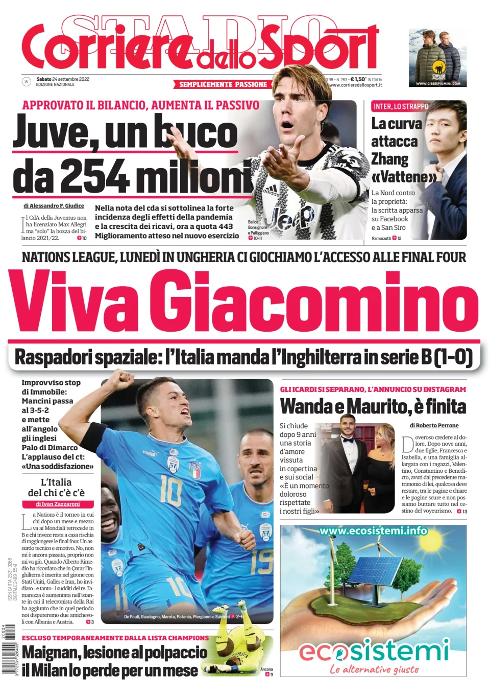 Il Corriere dello Sport oggi in edicola in prima pagina apre parlando dellinfortunio di Maignan che tornerà nel 2023 così come anche Ciro Immobile della Lazio. Diamo unocchiata alle principali novità sul mondo dello sport e in particolare. Questa è la prima pagina del Corriere dello Sport in edicolaoggi giovedì 22 settembre 2022.